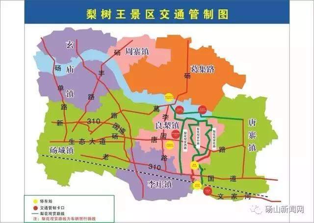 2017砀山梨花节系列活动期间对梨树王、圣德书院周边景区部分道路采取临时封闭的的措施,除游观光摆渡车和应急救援车辆通过,其余机动车辆禁止通行(包含电瓶三轮车),所有外来车辆一律停放至文家河停车场、良梨环镇路停车场和园艺场东停车场,其中旅游大巴按照指定线路停放至良梨环镇路停车场。